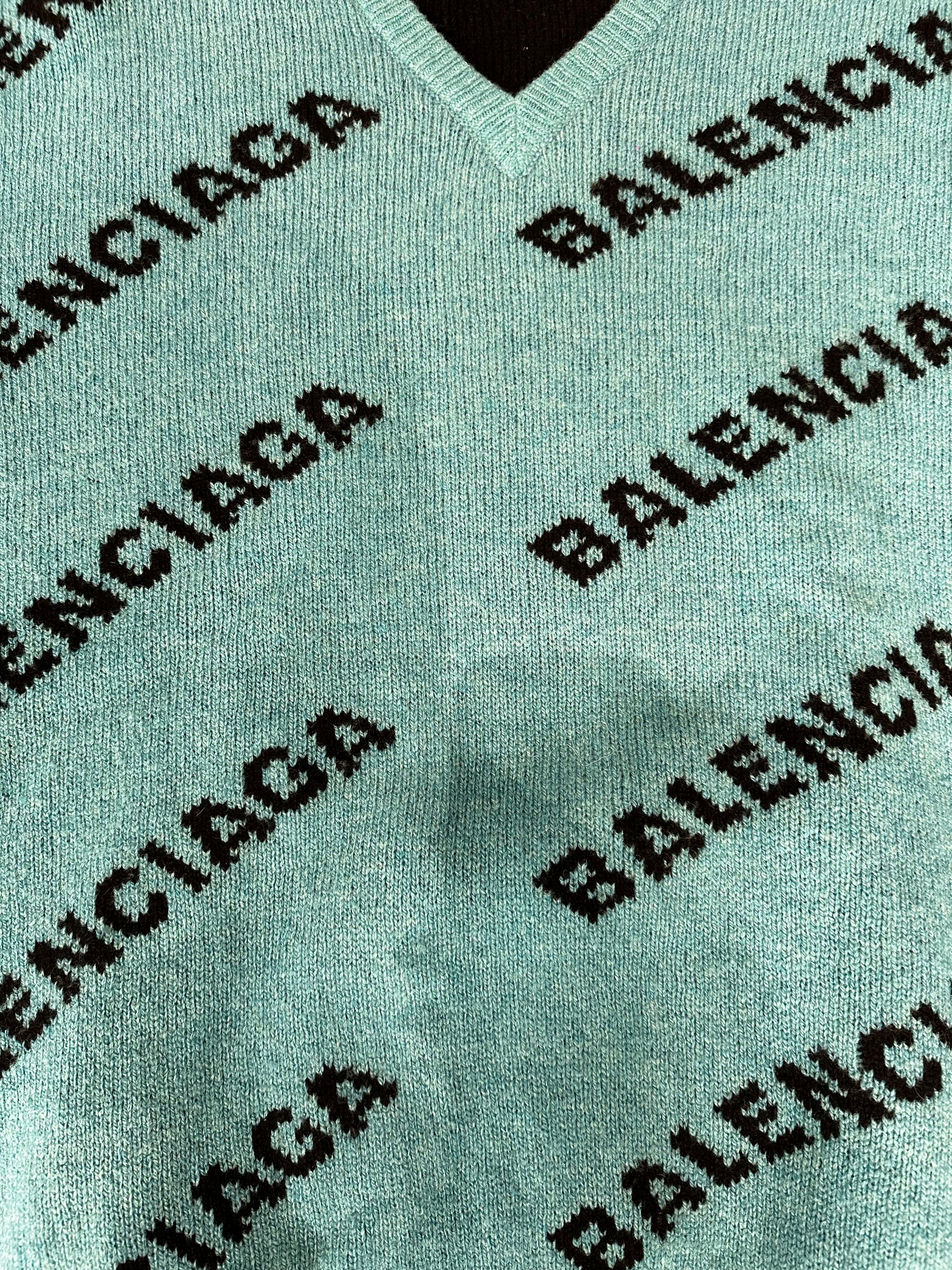 Pull Balenciaga au design oversize, dans un élégant coloris vert canard. Sa coupe ample et son col V en font une pièce idéale à superposer sur une chemise ou à porter seule pour un look décontracté-chic. Une pièce forte et confortable, fidèle à l'esprit contemporain de la maison Balenciaga.