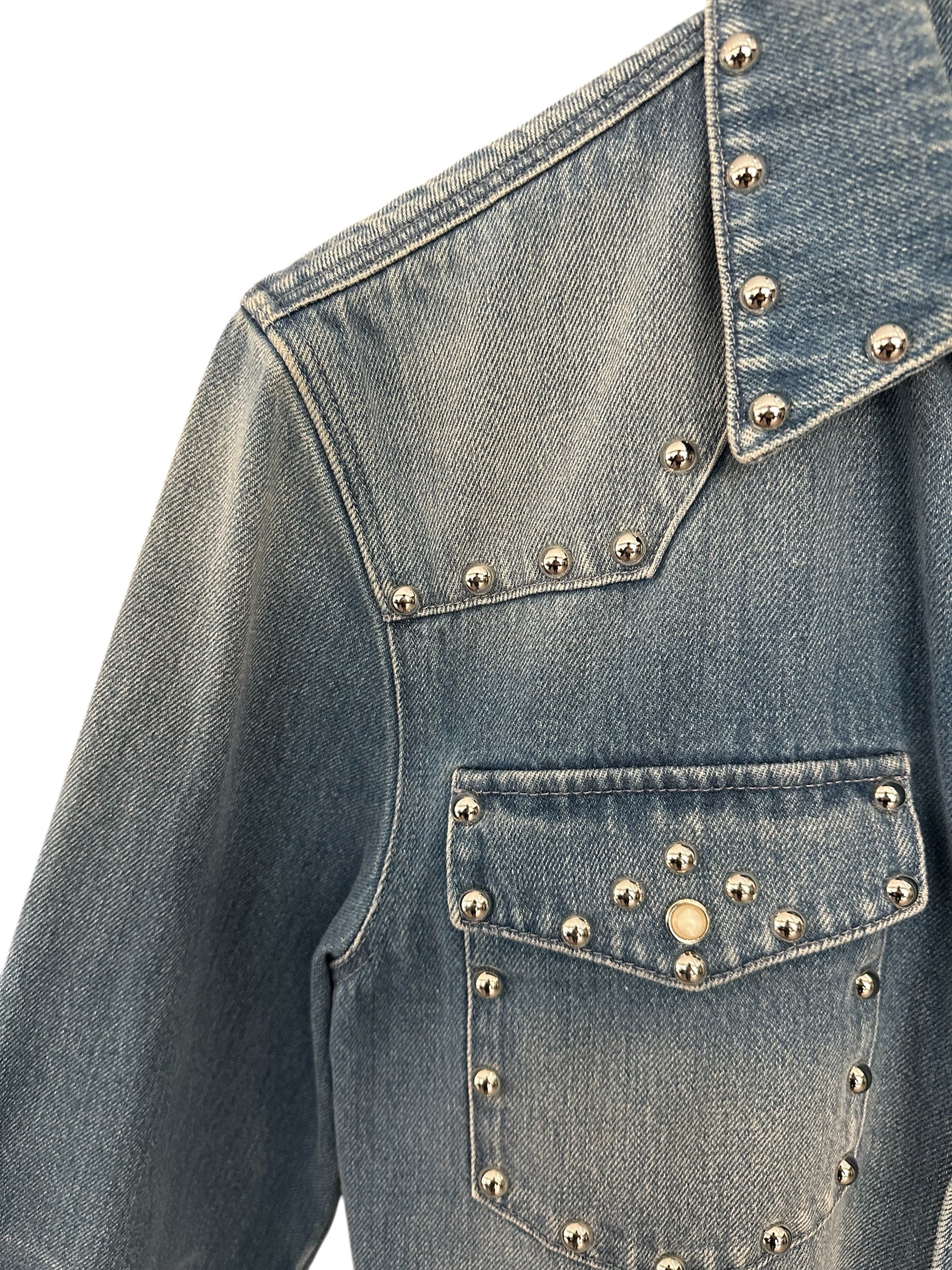 Détails : Clous métalliques sur les épaules et poches poitrine