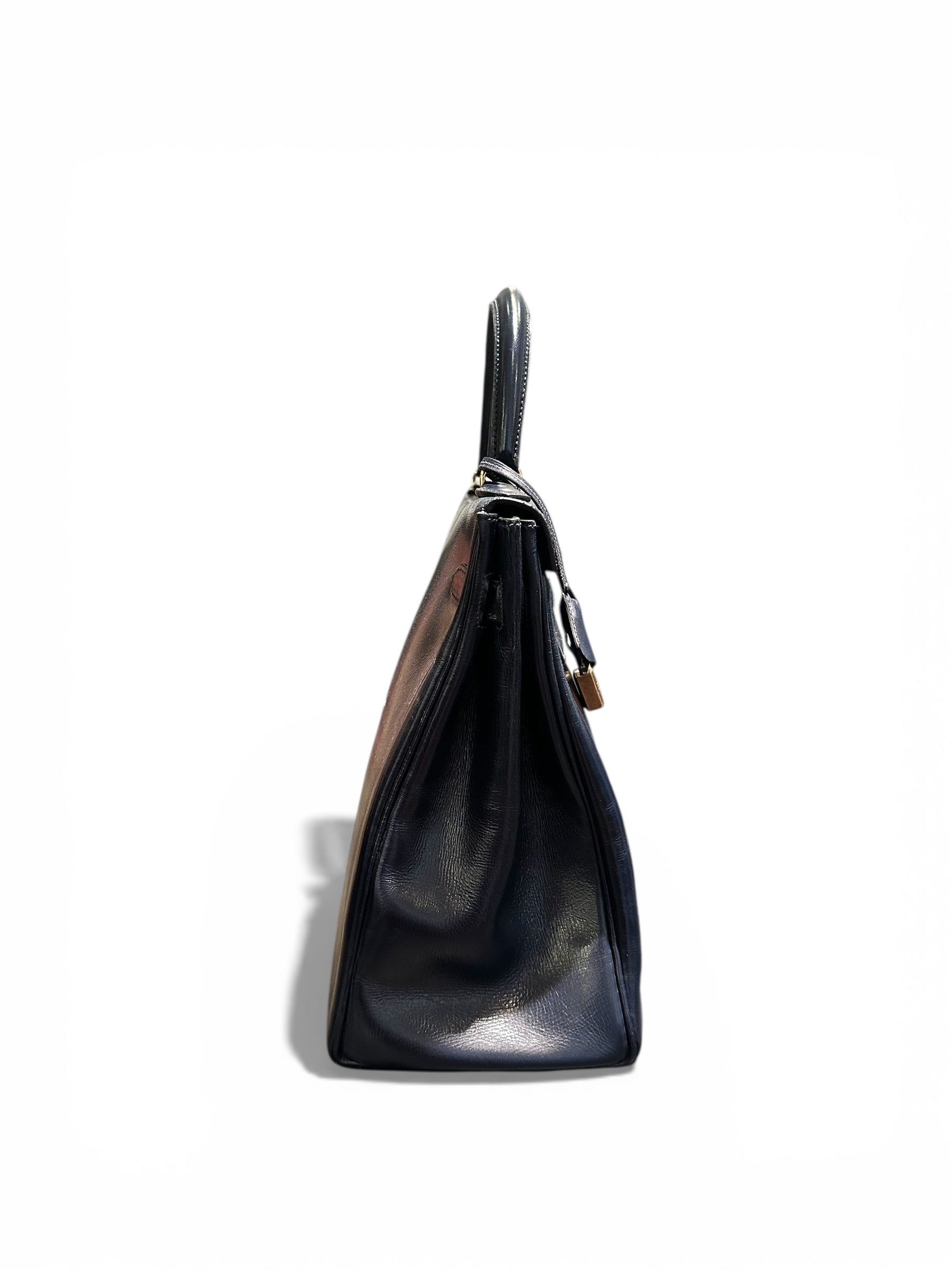 Hermès – Sac Kelly vintage 1971 en cuir Box bleu marine, bijouterie dorée