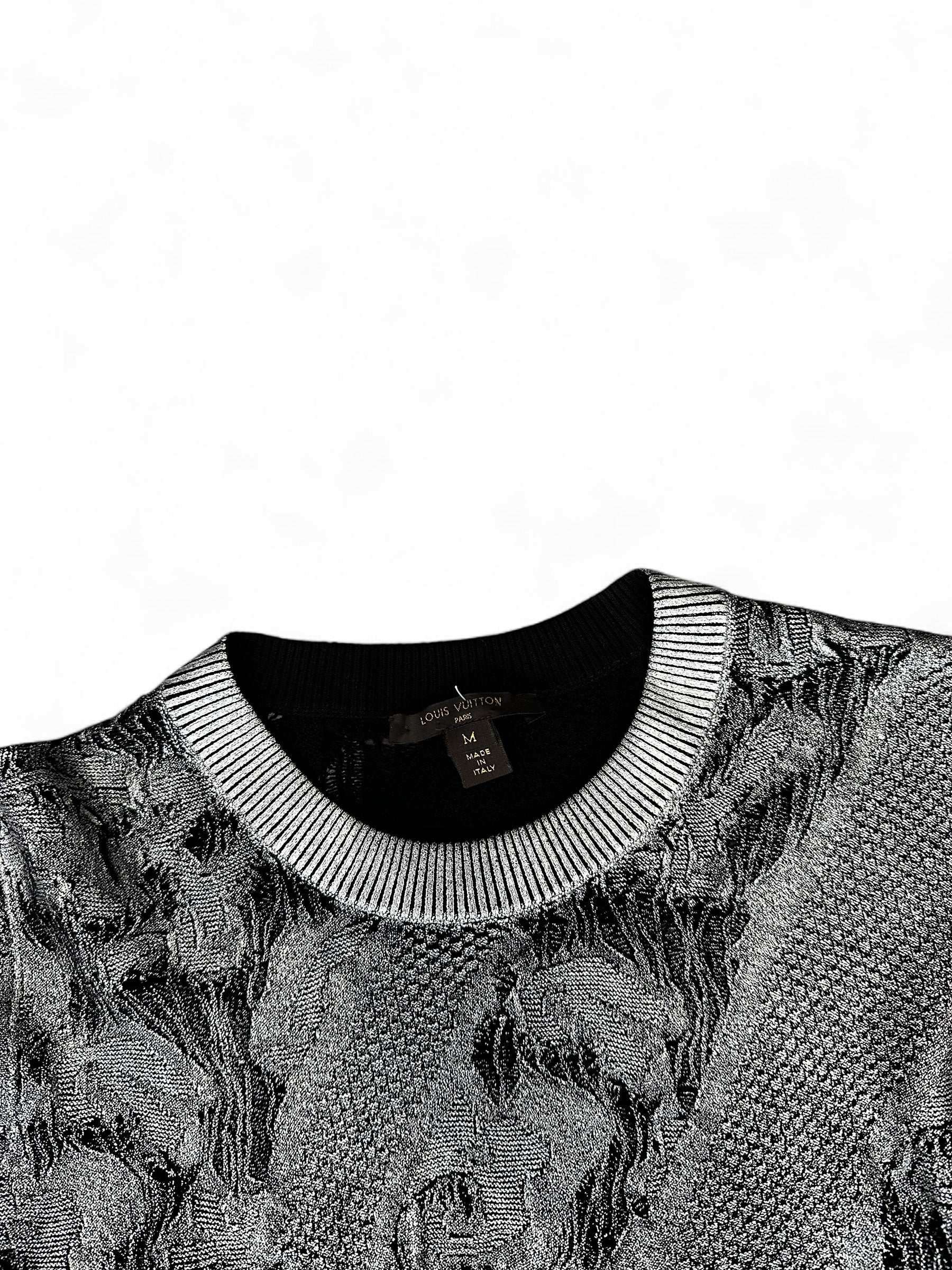 Ce top Louis Vuitton se distingue par sa maille fine texturée et ses tons argentés et noirs, offrant une esthétique contemporaine et sophistiquée. Sa matière souple et légèrement extensible épouse le corps avec élégance, pour un look moderne et raffiné.