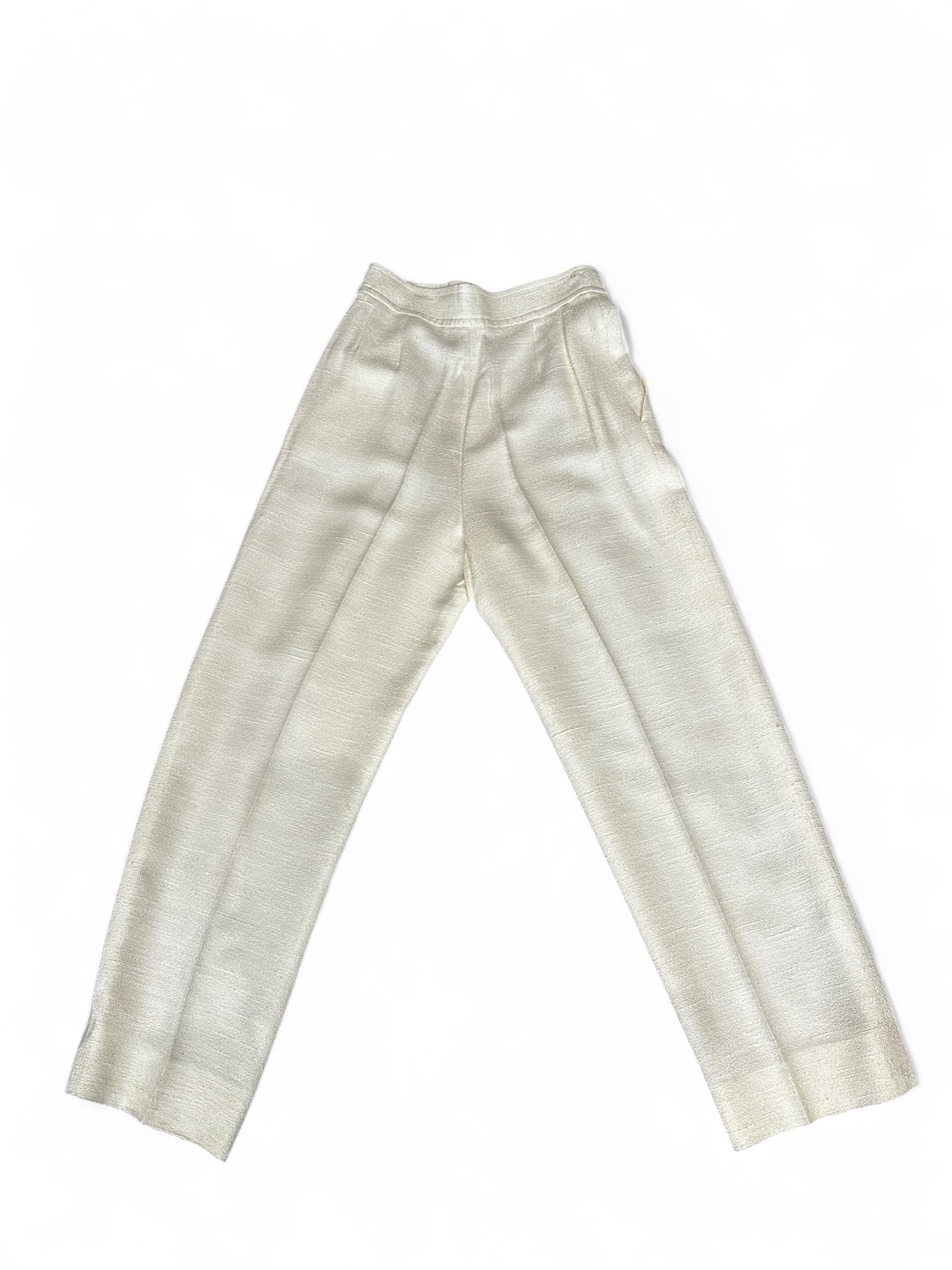 Ce pantalon vintage Yves Saint Laurent incarne l’élégance à la française avec sa coupe fluide et ses pinces marquées. Confectionné dans un tissu léger effet tweed, doux au toucher, il se décline dans une teinte beige/crème intemporelle. Une pièce raffinée et polyvalente, parfaite pour une silhouette chic au quotidien.