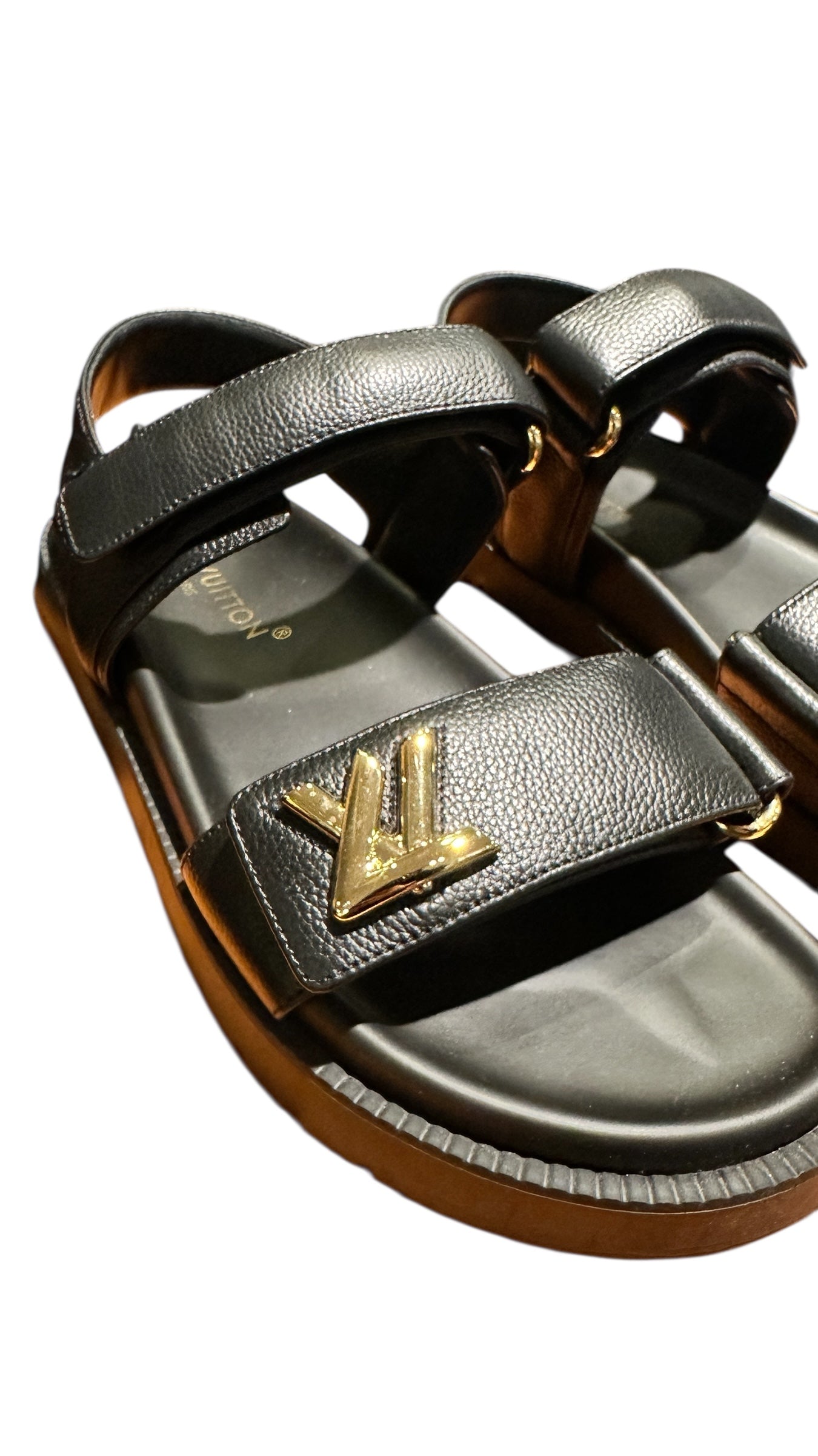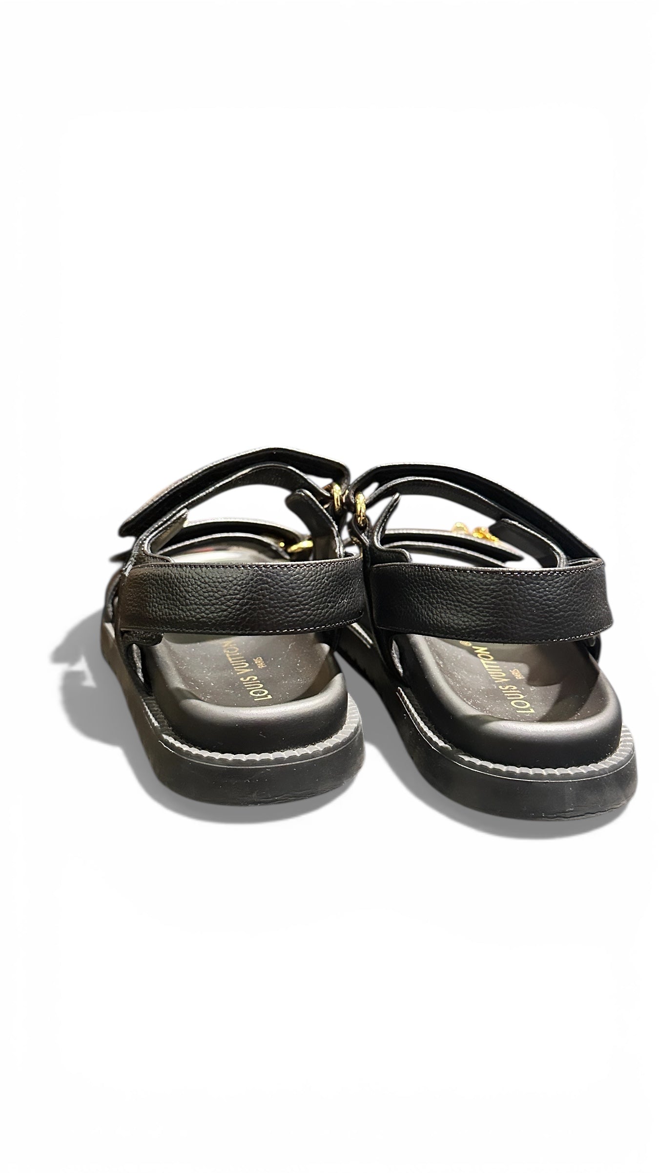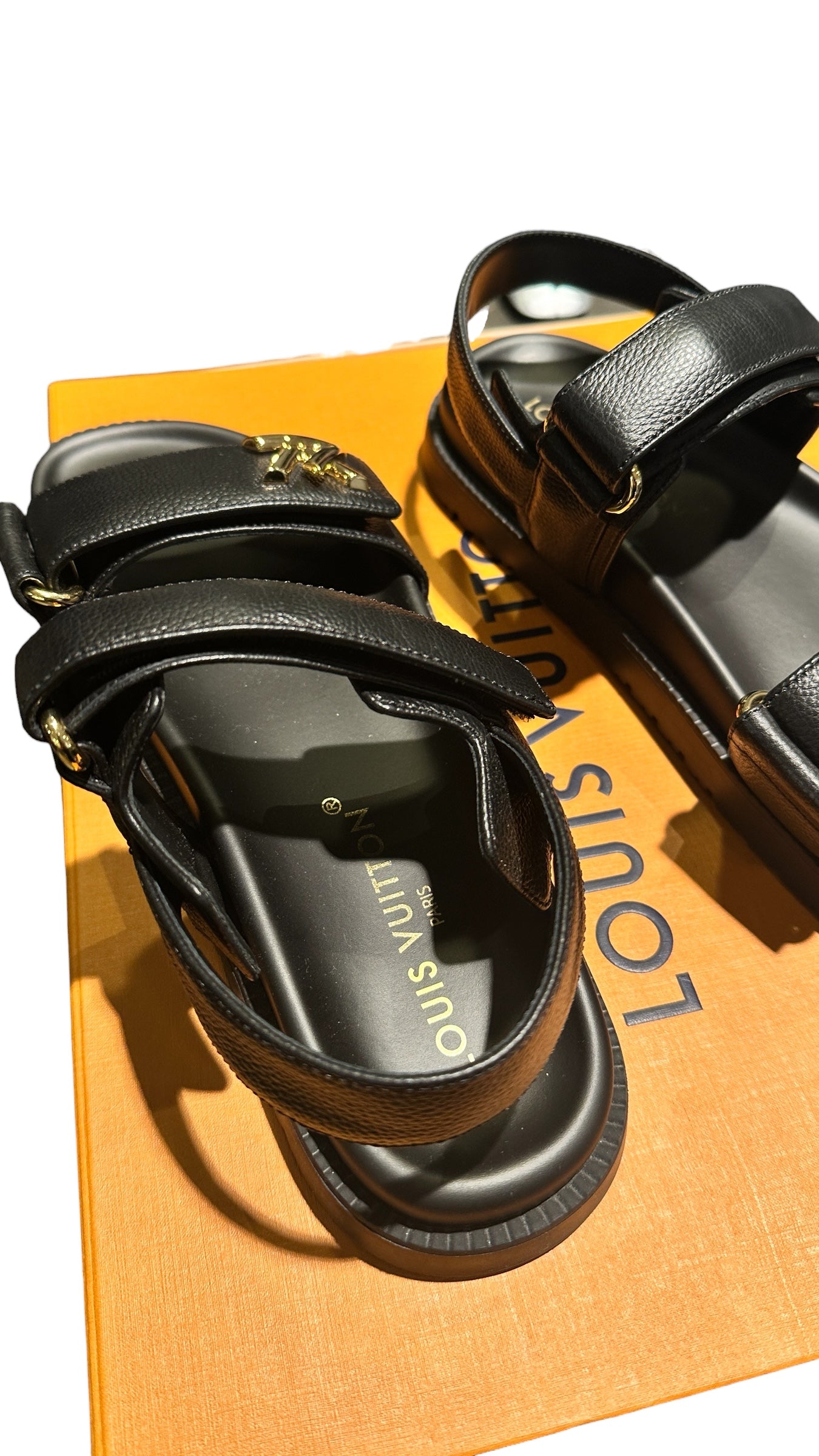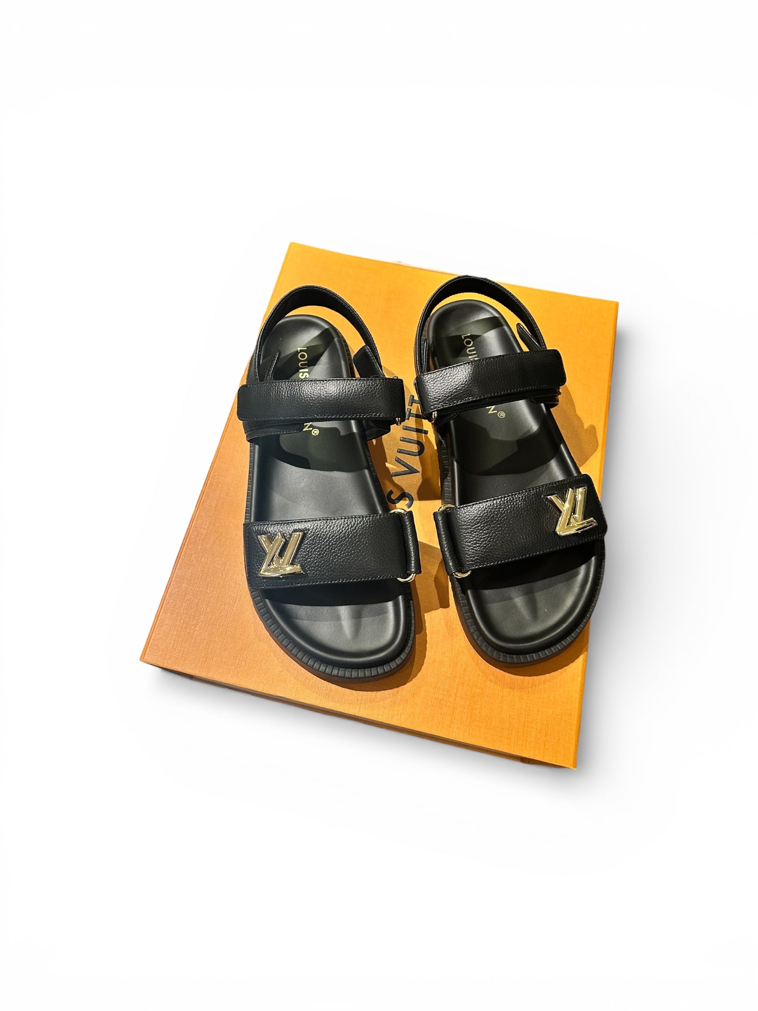 Élégante et ultra confortable, la sandale LV Sunset de Louis Vuitton est réalisée en cuir de veau souple et grainé.